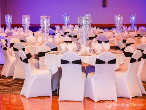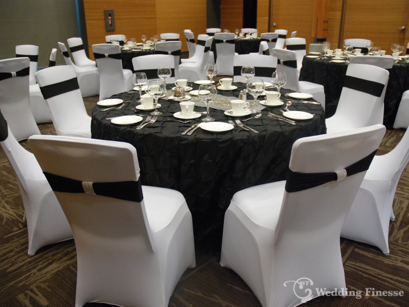 Our wedding spandex chair bands are double layer with a beautiful edge giving a delicate and elegant appearance to the overall look of the chair.