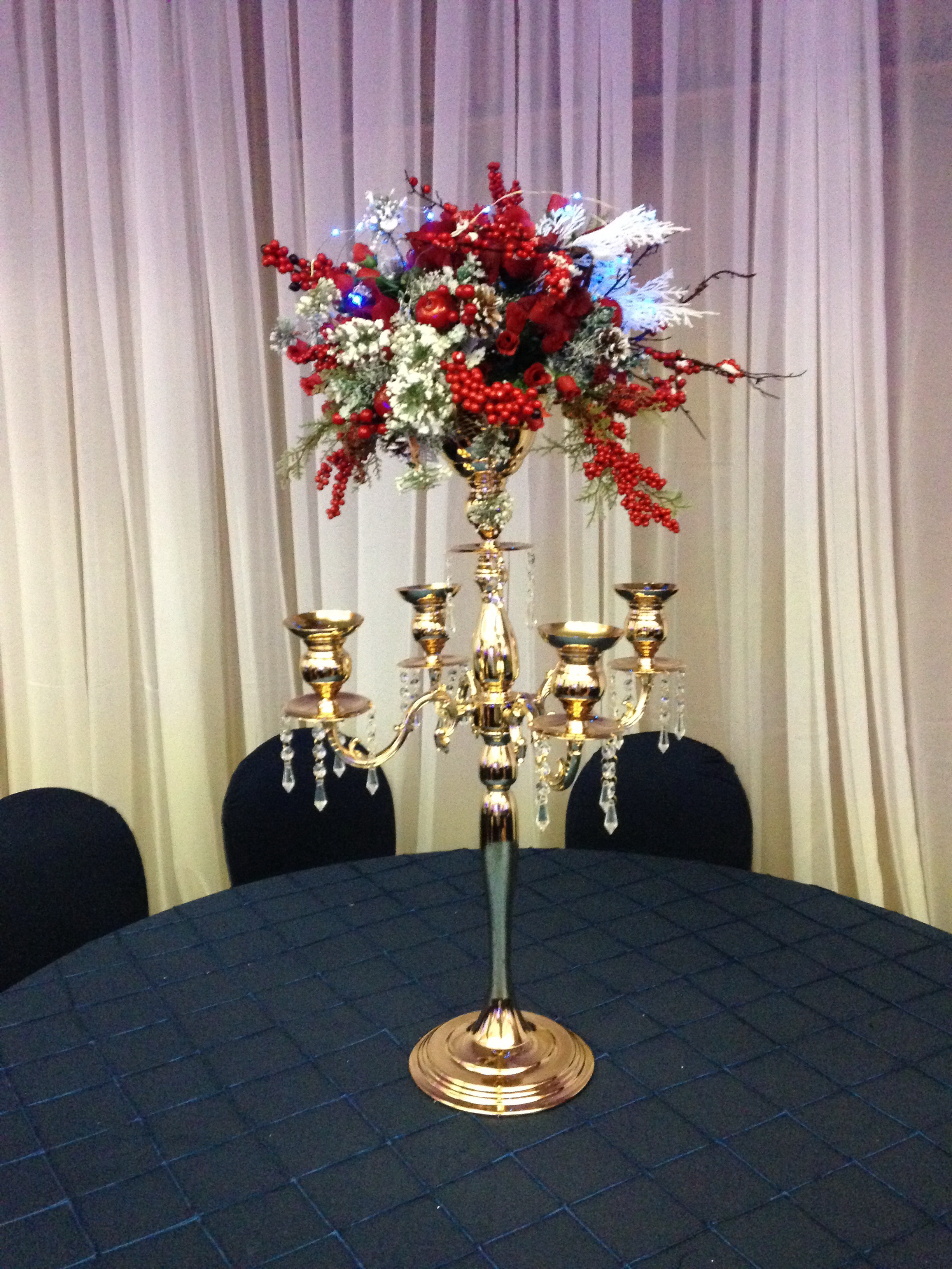30" Cold candelabra with Christmas arrangement